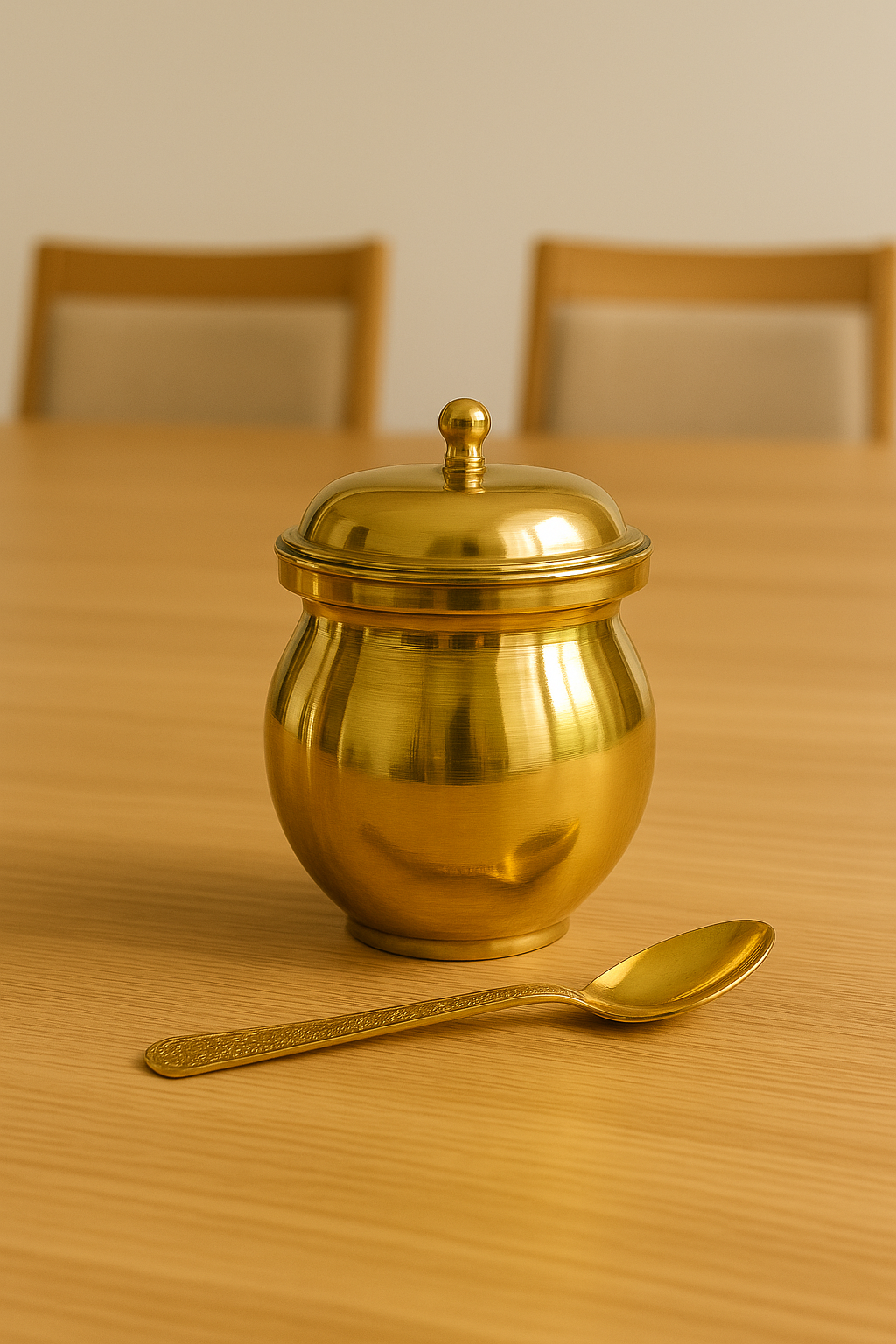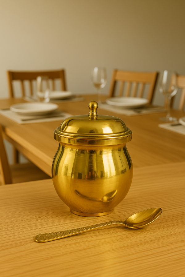 Add a touch of tradition to your kitchen with this pure brass ghee pot. Perfect for storing ghee, oil, pickles, and kitchen essentials while preserving freshness and purity. Durable, eco-friendly, and handcrafted with a classic ethnic design.