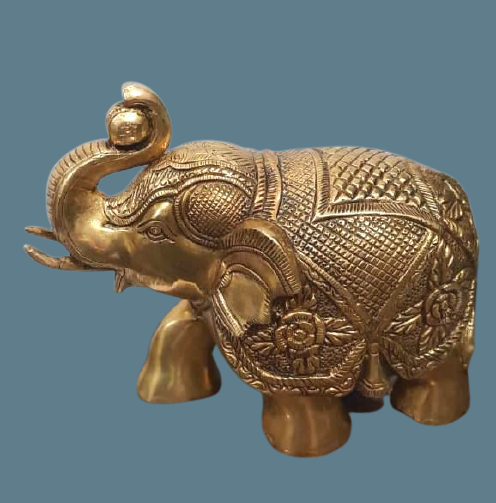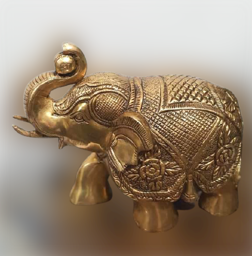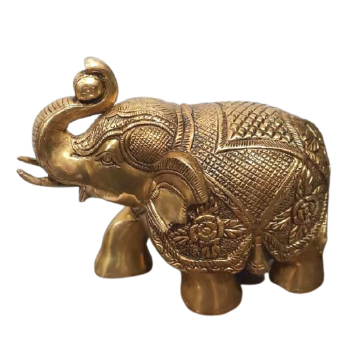 Jyoti Entreprises: MAHARAJA ELEPHANT IN BRASS Decorative Showpiece – 12 cm (Brass, Golden)