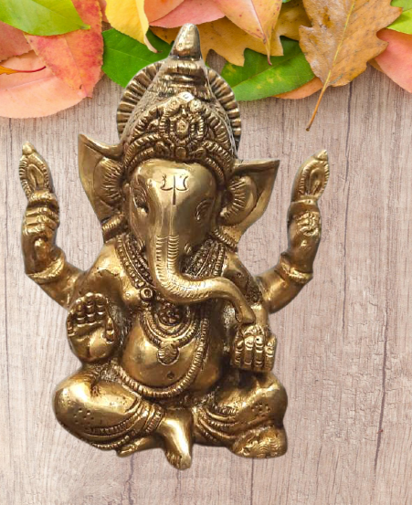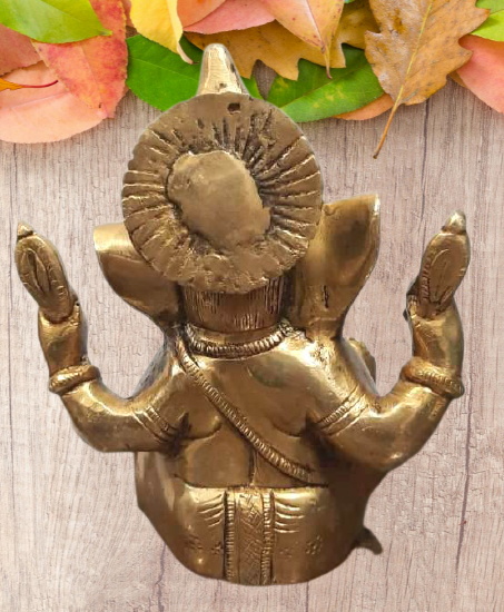 Jyoti Entreprises Brass Ganesha Idol For Home Decor OffIce Corporate Gift Showpiece Glossy (6.5 × 12 × 13 cm) Decorative Showpiece – 13 cm (Brass, Antique ) Decorative Showpiece – 13 cm (Brass, Yellow)
