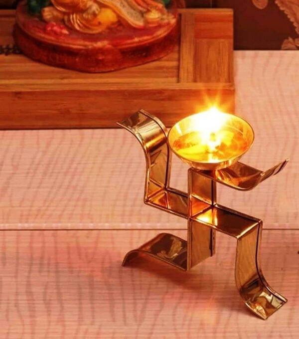 This Beautiful Swastik oil Diya lamp can be used as a home decor item or it can also be gifted to your near and dear ones.Also Adorn your temples with this diya which is a must for all religious ceremonies. Add more elegance to your Puja rituals with this elegant brass Diya which bears an ample space to hold the oil and the ‘batti’. This Beautiful Lamp is used for lighting purposes using a cotton ball .It is used in hindu temples for lighting and prayer purposes. Also Commonly used during Indian festive occasions like Diwali and Navratras . It is a wonderful item for lighting and decoration at Festive times and to brighten up your house.