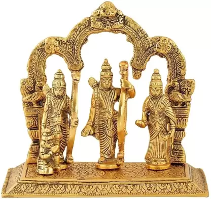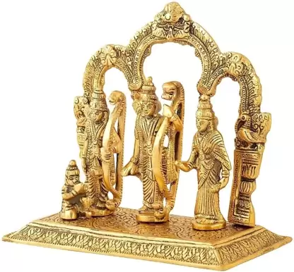 Decorate your interiors in an interesting manner with this classy showpiece featuring a Ram Darbaar figurine. This amazing showpiece can be placed in your living room or in your office and is considered highly auspicious and known to give positive vibes all around. The statue is made up of Brass Antic adorned in our antique gold finish with a protective coating over it.